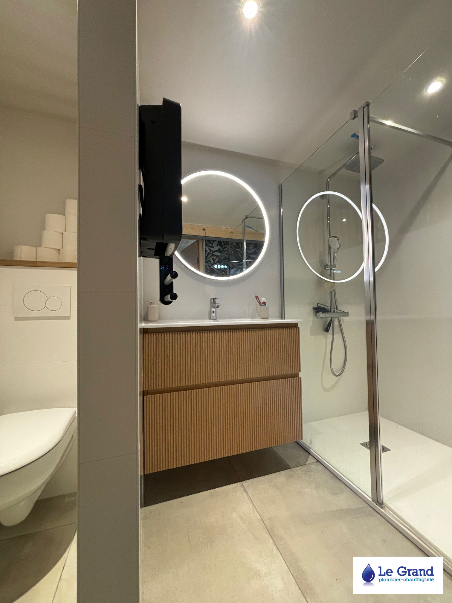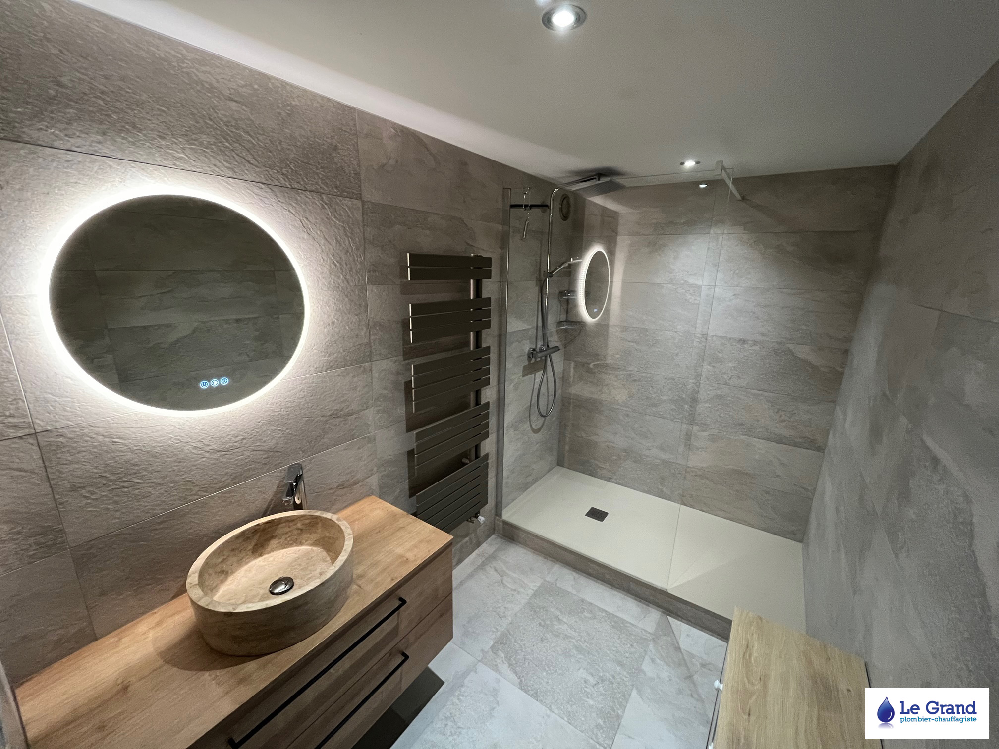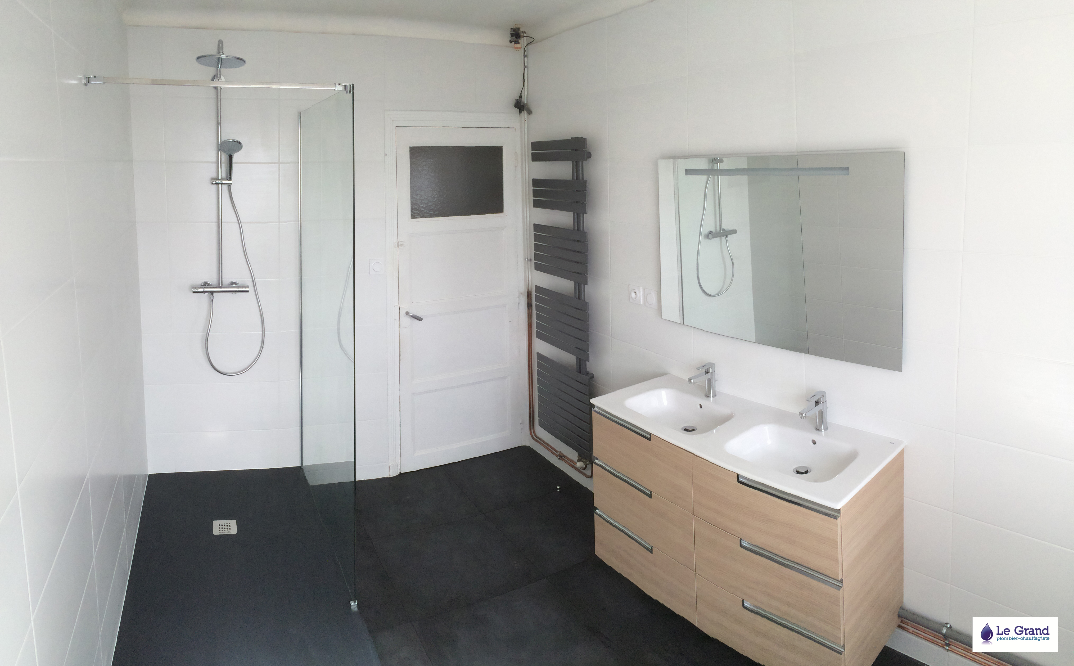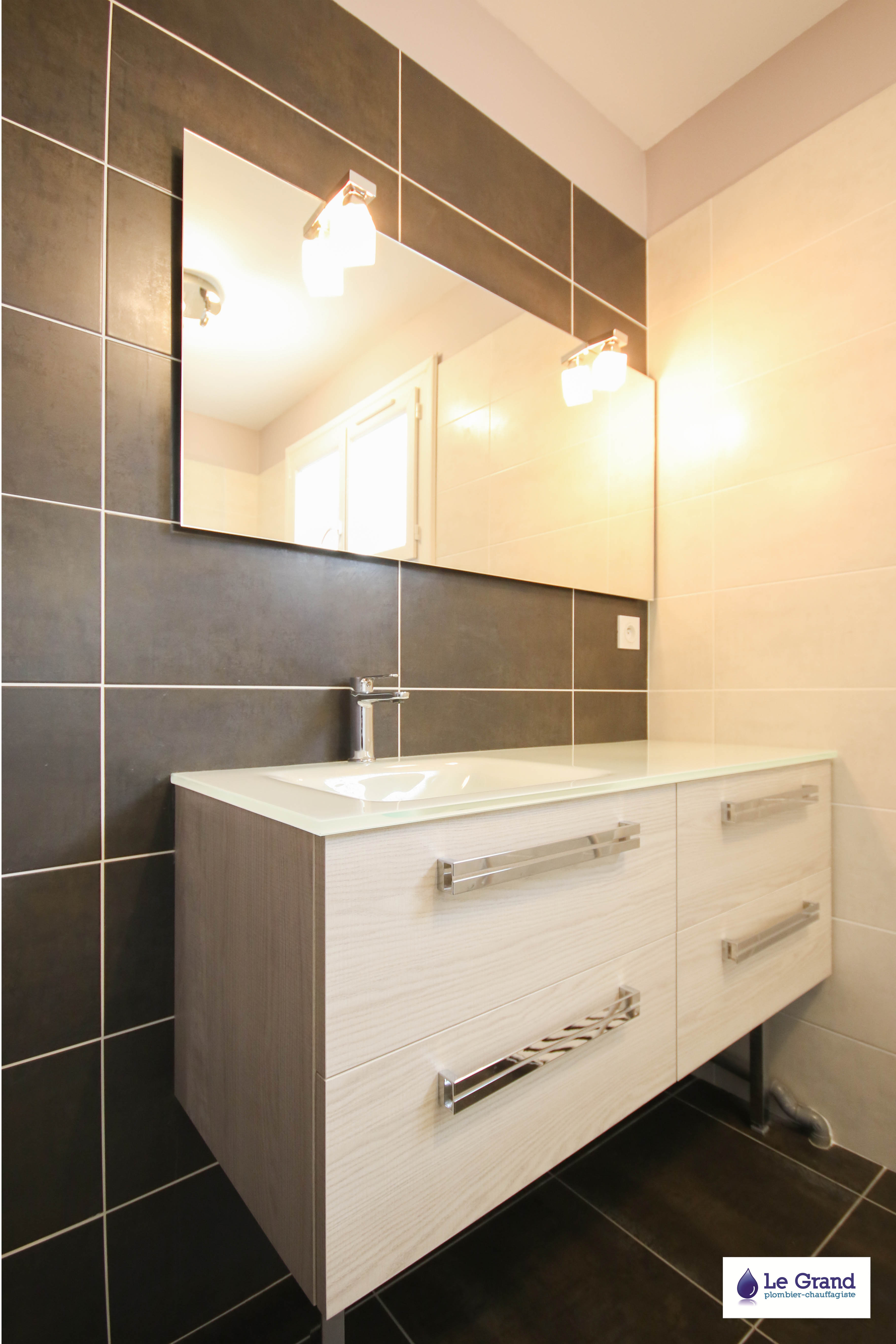 L’entreprise Le Grand vous accompagne dans votre projet de la conception jusqu’à la réalisation. Nous assurons les prestations de plomberie, chauffage, électricité et carrelage nécessaires à la rénovation de votre salle de bains.