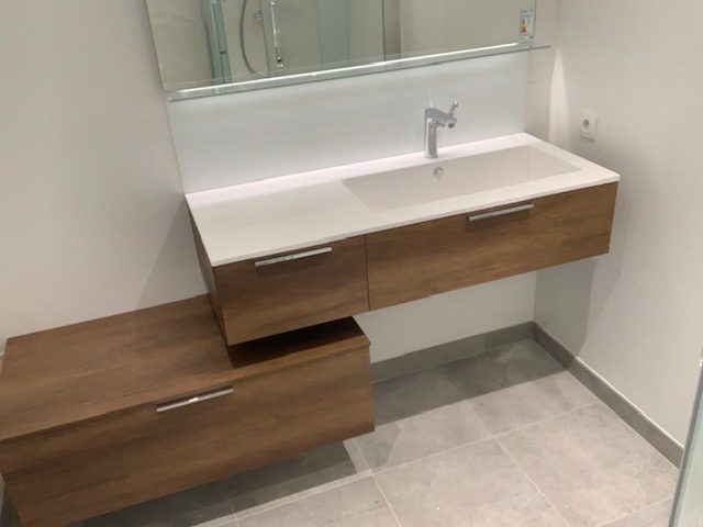 - Plan de travail sur mesure. Sous vasque 120cm. Vasque 60cm décalée.